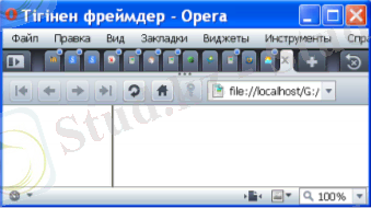 Егер ‘cols’ атрибутының мəәнін ‘50%, *’ мəәніне өзгертсек, онда екі құжат терезенің теңдей бөлігінде бағана болып орналасады.