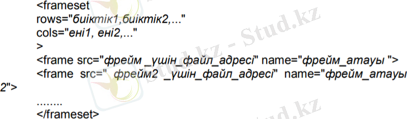 <FRAMESET> веб-беттегі фреймдердің құрылымын анықтап береді.