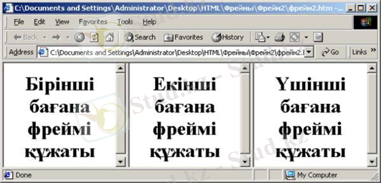 Сурет 65. Жол (row) бойынша браузер терезесіне үшінші құжатты қосу