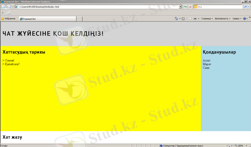 3. scrolling="yes" атрибуты арқылы хат мұрағаты мен қолданушылар тізімін, егер де мəәтін көлемі өте көп болса, оң жақта пайда болған «прокруткалар» арқылы көре аламыз.