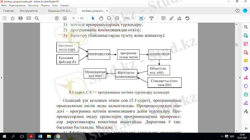1-сурет С/С++ программасы мəтінін түрлендіру кезеңдері