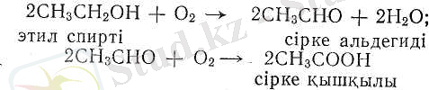 Этил спиртінің тотығуы екі сатыда жүреді. Алдымен сірке альдегиді түзіледі де, соңынан ол сірке қышқылына дейін тотығады. Оны мына реакциядан көруге болады: