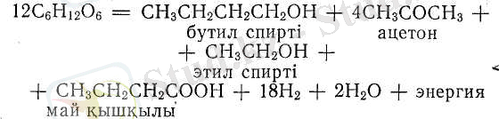 Бұл процесс Клостридиум ацетобутиликум микроорганизмінің көмегімен жүреді. Ол қозғалғыш, мөлшері 3, 5 - 5 мкм болатын, таяқша, анаэробты, спора түзетін, клеткалары қосақтала немесе тізбектеле орналасқан бактериялар. Олар дайын амин қышқылдары мен витаминдерді қажет етеді.