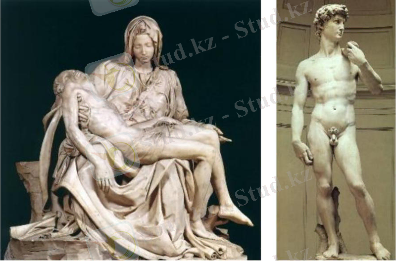 2. Микеланджело; Скульптура:Пьета деп аталады. Тип: Мраморная статуя.