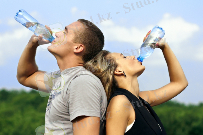Су - қоректі орта, ол диохимиялық және биофизикалық реакция жүретін, зат алмасу процесімен байланысқан, өмір сүруге керекті зат тасымалдау жүйесінің жұмысын атқарады (тағам заттарды тасымалдайды) . Су арқылы ағзадан зат алмасу процесінің заттары шығарылады, термикалық (біркелкі мөлшерін) сақтайды. Ағзаның қызуы қоршаған ортаға су буы дене ішінен өкпе арқылы шығарылады. Секрет бөлінуіне, ұлпа мен жасуша аралығындағы кысым күшінің байланысының күйіне, нәжістің сұйықталуына су қажет. Қалыпты жағдайда адамның су жоғалтуы бір тәулікте орташа есеппен 2300-2800 мл (шамамен 1500 мл, тері және бумен 400-700 мл, тыныс алумен 300-400 мл, нәжіспен 70-200 мл) . Осыған байланысты адамға (1 кг дененің кесек өлшеміне 34-45 мл) судың орташа көлемі керек. Ауыр жұмыс істегенде және сыртқы ортаның температурасы жоғары болғанда су қажеттілігі көбейеді. Қалыпты жағдайда су құю тамақ арқылы түседі. Сондықтан, ағзаның суға қанағат болуы үшін косымша 1200-1500 мл шамалы бос сұйықты (су, сүт, тосап, сор-па, шырын) қолдану қажет.