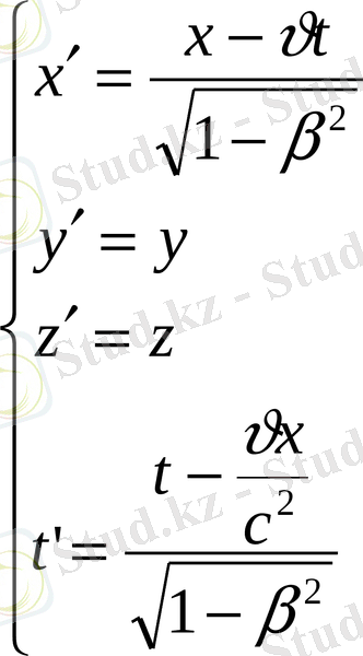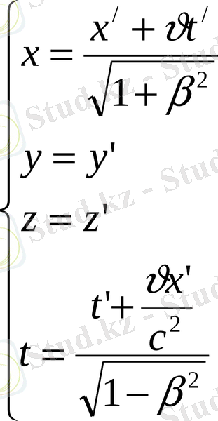 -ның алдындағы таңбамен ғана ажыратылады. Лоренц түрлендірулерін талдай келіп, мынадай қорытындылар жасауға болады: