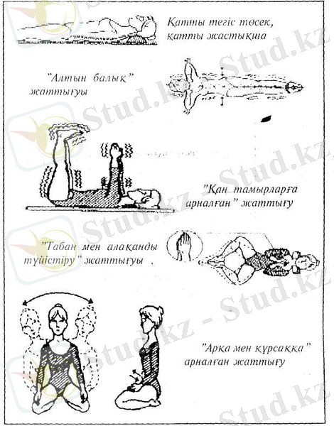 Төртінші ереже - қан тамырларға арналған жаттығу (еденде жатып аяқ қолды жоғары көтеріп ұстап тұрып кейін тастап жіберу керек) .