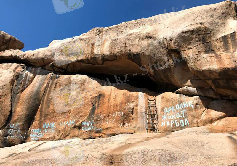 Қола дәуірінде жазық дала ортасындағы жалғыз граниттің шығар тұсы тегістігіне қызыл қынамен салынған суреттер. Бірақ осы мұралардың көбі адам қолынан пайда болған факторлардың әсерінен қатты бүлінуге ұшырап, қазіргі таңда реставрациялық шараларды талап етеді. Жазбалардың басым бөлігі бүлінгенмен, қалған бөлігі өңірдің ежелгі тұрғындарының дүниетанымын насихаттайды.