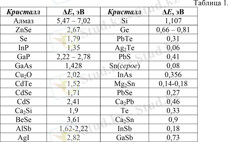 1-кестеде ең маңызды жартылай өткізгіш материалдардың өткізгіштік аралығы көрсетілген.
