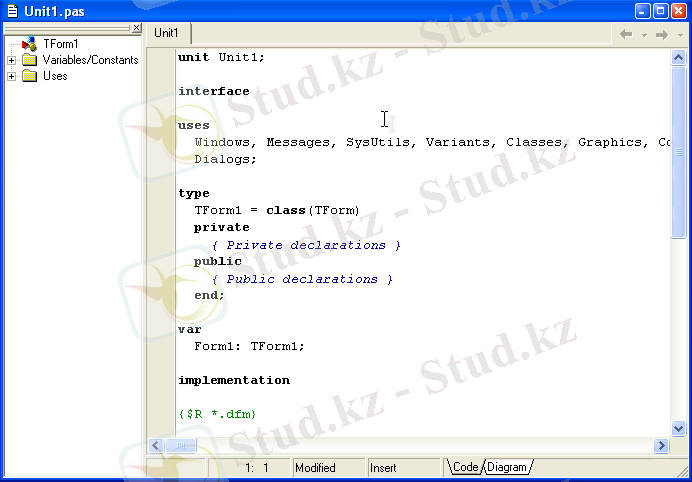 4. Кодтар редакторының терезесі(Unit1. pas)