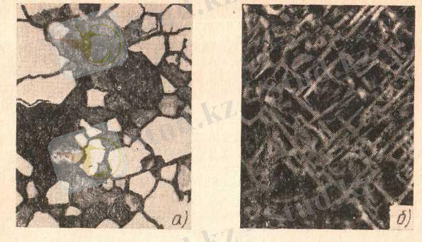 ) қалыптағыдай механизм бойынша полиэдрлік құрлым түзе отырып (9. 1, α-сурет), ал тез салқындағанда мартенситтік механизм бойынша ине тәрізді құрылым түзе отырып (1, б-сурет) жүзеге асады.