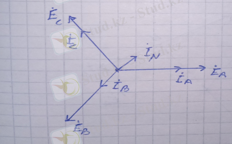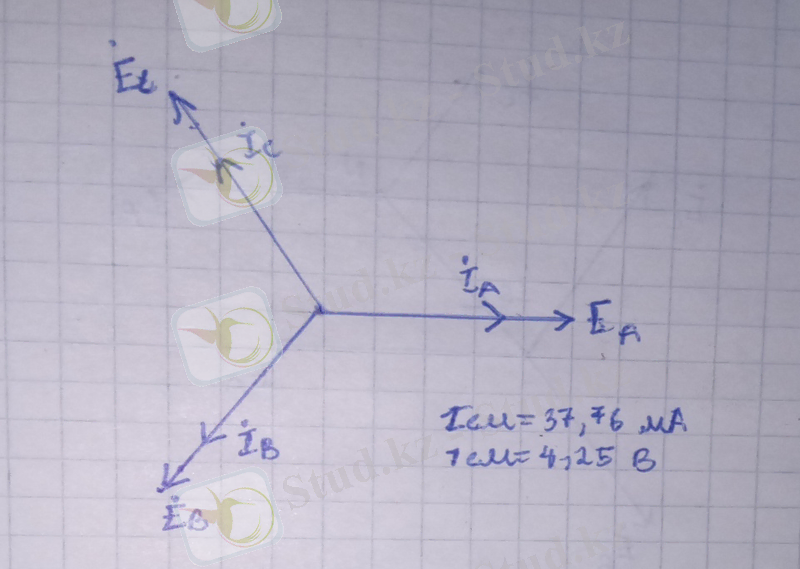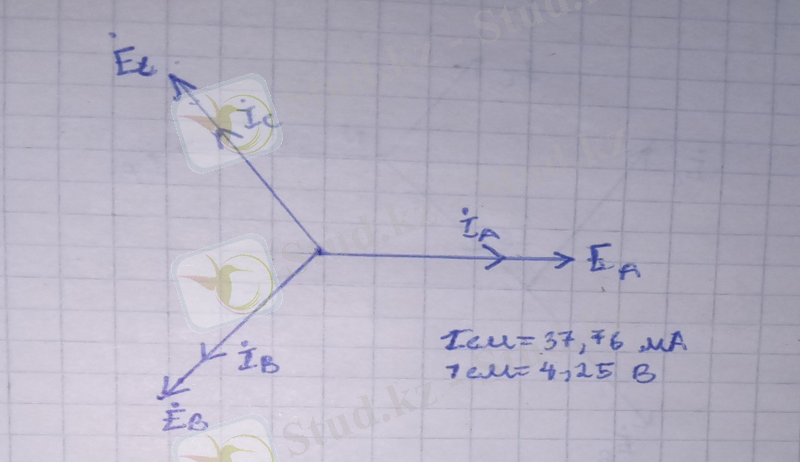 7) Үшфазалық тізбектің бейтарап сымы жоқ ережелердегі токтың векторлық диаграммасын және кернеудің топографиялық диаграммасын тұрғызу:
