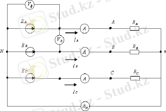 5 Зертханалық жұмыс№5. Қорек көзі мен қабылдағышы жұлдызша тәрізді байланысқан үшфазалы тізбекті зерттеу