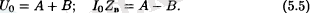 А және В табу үшін біз белгілі ток І0 мәндерін және х = 0 кезінде U0 кернеуін қолданамыз. Сонда (5. 4) теңдеулер осындай түрге ие болады:
