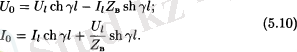 U0 және І0 қатысты (5. 9) теңдеулерді шеше отырып, біз НС басында кернеу мен токтың тәуелділігін белгілейтін НС соңындағы кернеу мен токтан өрнектерді аламыз: