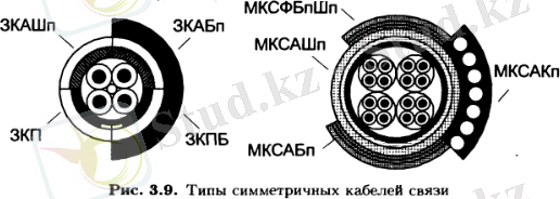 Электр байланысы желілерінде симметриялы байланыс кабельдерінің келесі негізгі түрлері қолданылды (олардың кейбіреулері 3. 9 суретте көрсетілген) :