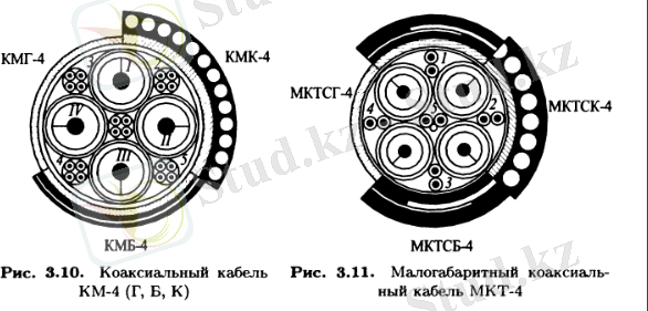 - КМБ-4 (КМГ-4, КМК-4) - төрт коаксиалды жұбы бар біртекті коаксиалды кабель (сурет. 3. 10) ;