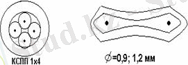 Бірінші төрттік жұп жасыл және көк түсті талшықтардан тұрады. Төрттік центрінде полистрольді кордель орналасқан, диаметрі d=1, 1 мм. Алюминийден жасалған қабығы бар, қалыңдығы 1 мм.