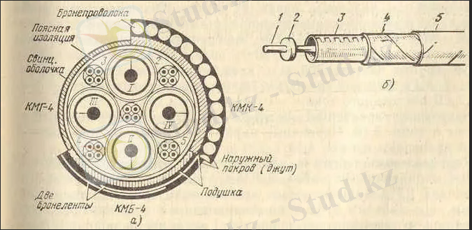 Әдетте, қорғасын не алюминийден жасалынған қаптама қолданылады. Пластмасса оқшауламасы бар кабельдердің қаптамасы әр түрлі поливинилхлоридтерден, ал резина оқшауламасы бар кабельде - резинадан жасалады. Қаптаманы мех. зақымнан, тоттанудан қорғау үшін қорғауыш жамылғымен (бронмен) орайды. Бронды қабат ретінде қалыңд. 0, 3 - 0, 8 мм болат лента пайдаланылады. Кабель керу күшінің әсеріне шыдау үшін сыртына диам. 1, 4 - 6 мм мырышталған болат сым оралады. Жоғары кернеулі күш кабелі тармағының ортасы қуыс болады, ол арнайы минералдық маймен толтырылады (2-сурет) . Жоғары қысымды Кабельдің оқшауланған тармақтары 15 - 20 ат. қысымдағы маймен толтырылған болат құбырға орналастырылады. Қазақстанда кабель өнімдерін жасаумен “Қазэнергокабель” акционерлік қоғамы шұғылданады (1999) . Оның өндірістік қуаты жылына АВВГ, ВВГ күштік кабельін өндіру - 850 км; АКВВГ, КВВГ балқымалық кабельін өндіру - 600 км; АПВ, АППВ қондырғылау кабельін өндіру - 2800 км; А, АС жалаңаш сым өндіру - 500 тн; МФ, МТ-2 троллей сымын өндіру - 200 тн.