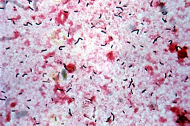 Бас миы талшықтарынан алынған жағындыдағы Listeria monocytogenes (Грам әдісі бойынша боялған)