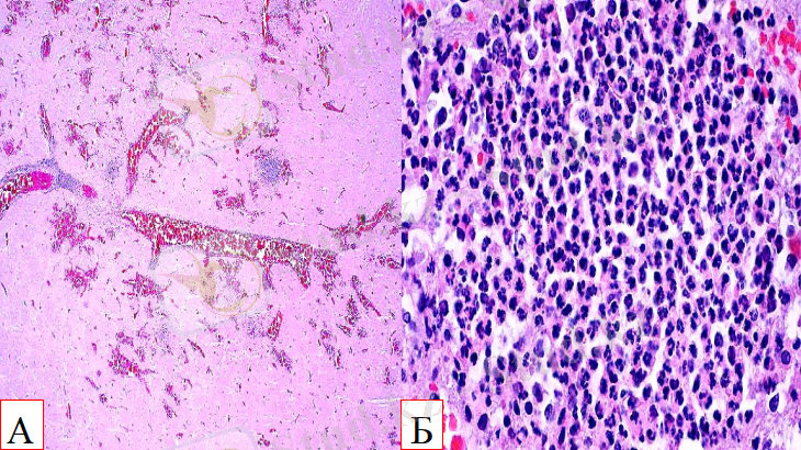 - лимфоциттермен макрофагтар инфильтраты - ми ұлпасында;