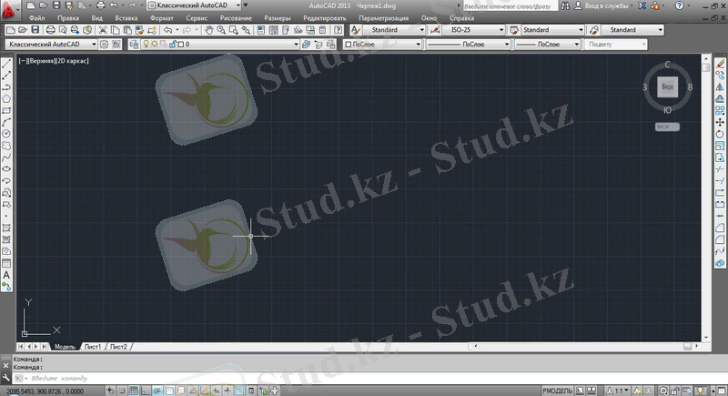Бұл жолда курсор қиылысының координаталары және сызу режимдері («Отображение сетки», Режим «Орто», «Динамический ввод» және т. б. ) көрсетіледі.