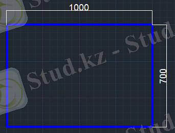 атты көрініс ашылады. Бұл жолда кесінді нүктесінің координаталарын енгіземіз. Мысалы, 1000, 800. Әрі қарай графикалық алаң бойынша оң жаққа кесінді нүктесінің екінші координаталарын енгіземіз. Мысалы, 2000, 800. Төртбұрыш салу үшін кесіндіні жоғарыға қарай жылжытамыз. Яғни, келесі координаталар 2000, 1500. Төртбұрыштың келесі қабырғасын салу үшін, командалық жолға 1000, 1500 координаталарын енгіземіз. «