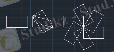 - сурет - Бастапқы объект пен «Повернуть» командасының нәтижесі Бұл объектіге «Повернуть» командасын қолдану. Сол жақтағы төменгі