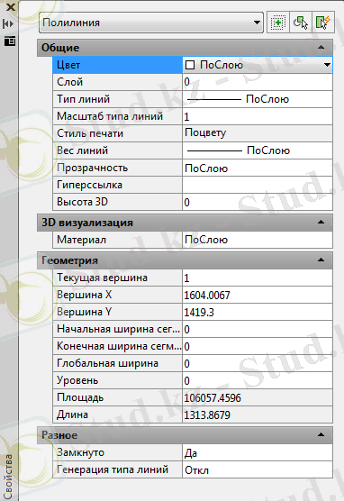Егер бір объект таңдалса, терезеде бұл объектінің жалпы және геометриялық қасиеттері көрсетіледі.