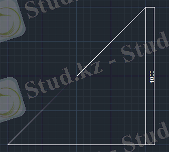 «Отрезок» командасы көмегімен графикалық алаңда үшбұрыш объектісін тұрғызу. Оң жақ қабырғасы 1000 бірлікке тең болу керек. Қабырғаның (катеттің) өлшемін орнату. Объектіге «Зеркало» командасын қолдану. Нәтижесі суретте көрсетілген. Назар аударыңыз: қабырғаның өлшемі көшірілмейді.