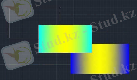 «Прямоугольник» командасы көмегімен 3 тік төртбұрыш тұрғызу. Екінші және үшінші төртбұрыштарға «Градиенттік заливка» орнату. «Переместить» команасы көмегімен суреттің оң жақ бөлігінде көрсетілгендей орналастыру. Контексттік мәзір арқылы «Порядок прорисовки» элементін таңдап, «На задний план», «На передний план» командаларын қолдану.