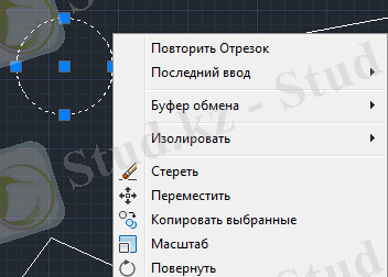AutoCad жүйесінде контекстік мәзір командалар құрамына кіретін командалар бірнеше параметрлерге байланысты. Олардың ішінде:
