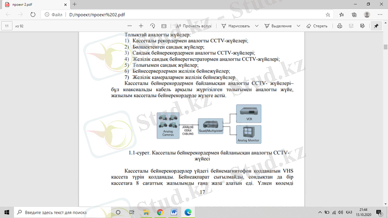 1. 1-сурет. Кассеталы бейнерекордермен байланысқан аналогты CCTV жүйесі