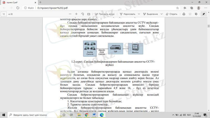 1. 2-сурет. Сандық бейнерекордермен байланысқан аналогты CCTVжүйесі