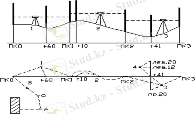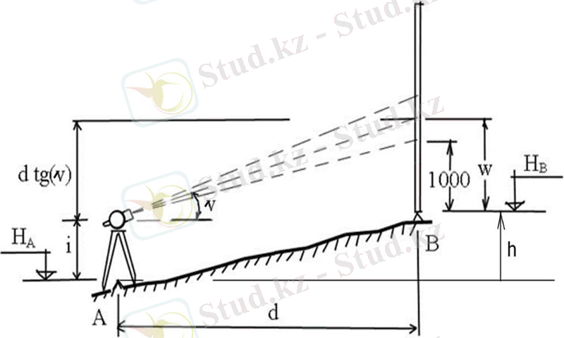 Теодолит бойынша тригонометрлік нивелирлеу сызбасы