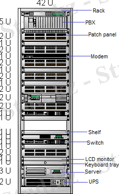 - Телекоммуникациялық шкафта 36 компьютер мен 90-телефон құрайтын жұмыс орнын қосу үшін қолданылады: