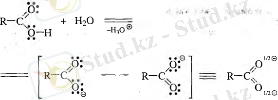 Карбон қышқылының қышқыл диссоциациясы кезінде RСОО - ионының карбоксилаты түзіледі. Электрондық құрылым тұрғысынан ол екі энергетикалық эквивалентті құрылымның резонанстық буданы ретінде ұсынылған.