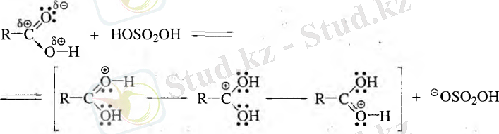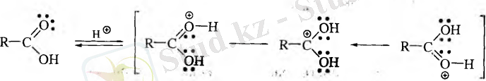 Карбоксил тобының протонизациясы нәтижесінде осы топтың көміртегі атомының электрофильділігі және оның нуклеофильді реактивтермен реакция жасау қабілеті артады.