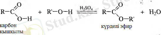 Карбон қышқылының спиртпен күшті қышқылдармен катализденетін реакциясы (H 2 S0 4 , p-толуолсульфоқышқыл және басқалары) этерификация реакциясы ретінде белгілі ( Фишер-Шпайер реакциясы, 1895) .