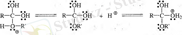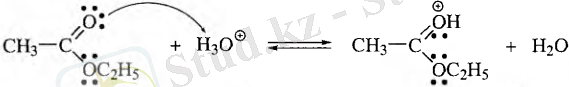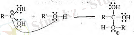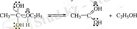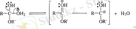 4 кезең- протондалған карбон қышқылы мен алкоголь молекуласын түзе отырып, протондалған интермедиаттың диссоциациясы: