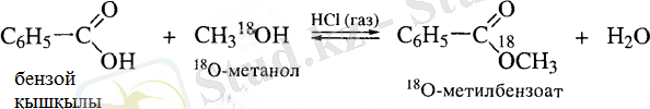 Алкоголь молекуласының карбонил тобының көміртегі атомына нуклеофильді қосылуы гидроксил тобындағы 18 0 изотопы бар спирттермен тәжірибе арқылы расталды. Мысалы, бензой қышқылының 18 0 метанолмен реакциясының өнімдерін талдауға сәйкес, белгіленген оттегі күрделі эфирде болды.