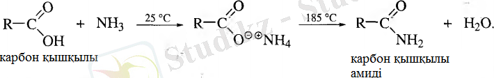 Бөлме температурасында карбон қышқылы аммиакпен аммоний тұзын түзеді, ол қызған кезде карбон қышқылының амидіне айналады. Бұл реакция өнеркәсіпте жоғары қайнаған карбон қышқылдарының амидтерін алу үшін жиі қолданылады.