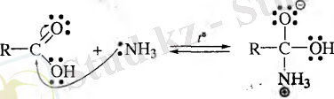 2 кезең -карбон қышқылының карбонил тобына аммиак молекуласының нуклеофильді қосылуы: