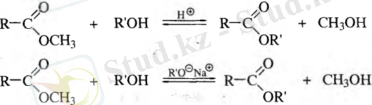 а) қышқыл катализаторлардың қатысуымен карбон қышқылдарын спирттермен (негізінен бастапқы) этерификациялау.