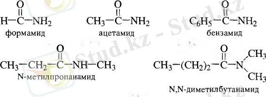 Амидтердің аттарын құрастыру ережелері келесі мысалдармен суреттелген:
