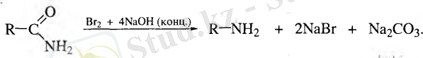 Гоффманның гипогалогениттік реакциясы . Амидтердің галоген сілтілі ерітінділерімен реакциясы (йод, бром немесе хлор) Гоффман реакциясы деп аталады (1881) . Гоффманның қайта құрылуы деп аталатын бұл реакция амидтің көміртегі тізбегін бір көміртек атомына қысқарта отырып, Аминнің пайда болуына әкеледі. Реакция майлы және хош иісті қышқылдардың амидтерімен тегіс жүреді.