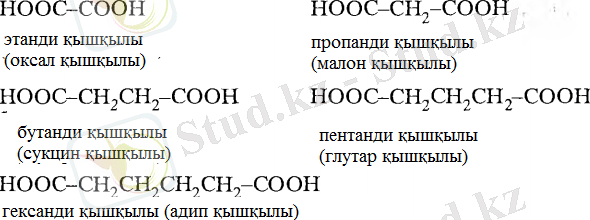 IUPAC номенклатурасына сәйкес алифатты дикарбон қышқылдарының атаулары сәйкес көмірсутектің атауына ди қышқылы жұрнағын қосу арқылы түзіледі. Қарапайым қышқылдар үшін тривиалды атаулар қолданылады (төменде мысалдарда бұл атаулар жақшада көрсетілген) .