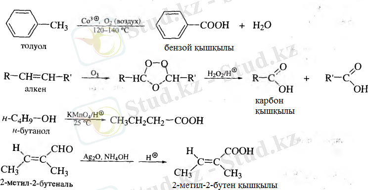 Көмірсутектердің, спирттердің, альдегидтер мен кетондардың тотығуы. Бұл реакциялар карбон қышқылдарын алу кезінде және ең алдымен өнеркәсіптік тәжірибеде жиі кездеседі.