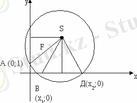 +вх+с=0 квадраттық теңдеуін циркуль және сызғыш көмегімен шешу әдісін ұсынамыз (1-сурет) . Ізделінді шеңбер абцисса өсінде В(х
