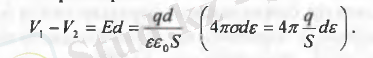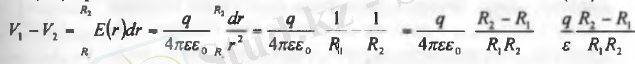 Астарлардың арасындағы потенциалдар айырмасын интегралдау арқылы мынаны табамыз. Өрнек бойынша